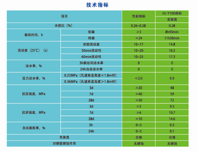 ●產(chǎn)品只有高充盈性,可一次性壓壓漿施工,管道內(nèi)漿體密實無空隙。無氯鹽、亞硝酸鹽、低堿、無銹蝕作用,無毒,對健康和環(huán)境均安全。